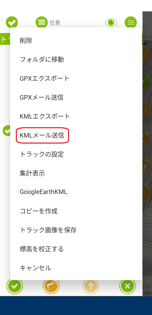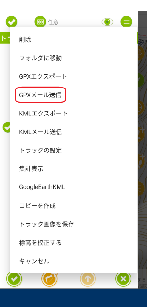 メニューが表示されたらGPX メール送信をタップします。